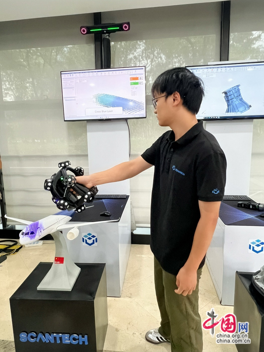 此外,世界一流的三維激光掃描儀演示引發了代表們的廣泛關注。手持設備輕輕環繞目標一掃,立體影像便實時呈現在屏幕上。外國記者還親身體驗了人像掃描功能,感受技術的精準與便捷。思看科技(杭州)股份有限公司技術支持工程師徐梓祥介紹,公司掃描儀涵蓋工業級與專業級,既廣泛服務于航空航天、汽車制造、綠色能源等工業領域,也深度應用于教學科研、3D打印、醫療健康等數字化場景。