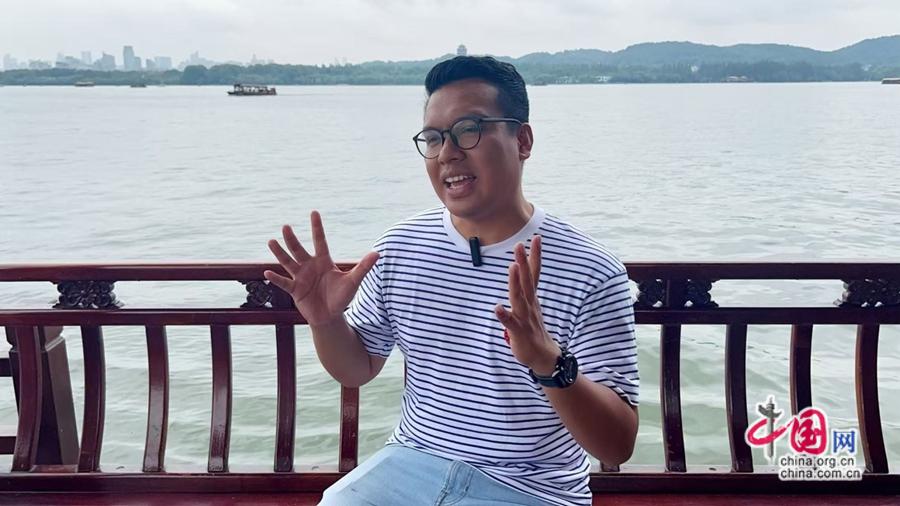 參訪中,西湖的自然之美、人文之韻與治理之智,讓外籍嘉賓頻頻駐足贊嘆?!吧嫌刑焯?,下有蘇杭,不來西湖,不算到過杭州?!毖胍晛喼薹侵薜貐^語言節目中心馬來語部外籍記者伊薩?祖比爾(Isa Zubair)直言,這是他第二次來杭,卻是首次泛舟西湖,“比起景致,我更沉醉于背后的故事——蘇東坡的治理智慧、白蛇傳的浪漫傳說,讓這座城市滿是文化底蘊?!倍盍钏|動的,是“綠水青山就是金山銀山”理念在杭州的落地生根,“我們需要水,需要清新的空氣,需要美好的環境。發展再快也要平衡好生態與生活,這才是真正的宜居。若用一句話形容杭州,這是一座‘浸潤歷史的綠色現代化之城’?!?/p>