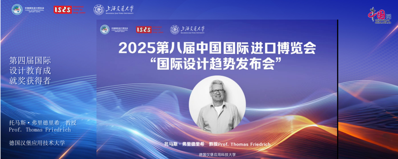 中國網/中國發展門戶網訊 11 月 9 日,第八屆中國國際進口博覽會——國際設計趨勢發布會在上海交通大學設計學院舉辦。本次活動以“融通創新?設計賦能” 為主題,吸引了來自國內外設計機構、龍頭企業、高校的50余位代表參會。