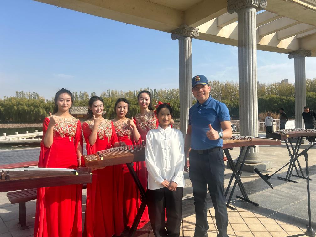 寧夏大學泰國留學生蘇琪簪(右二)在寧夏大學參加太極拳表演后留影(2025年10月30日攝)。新華社發