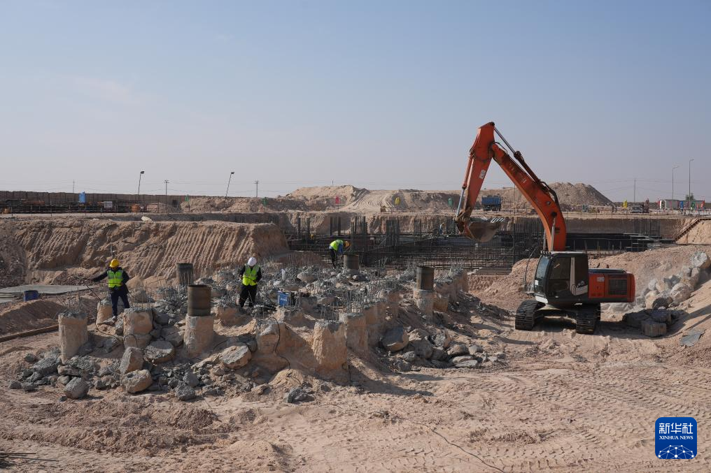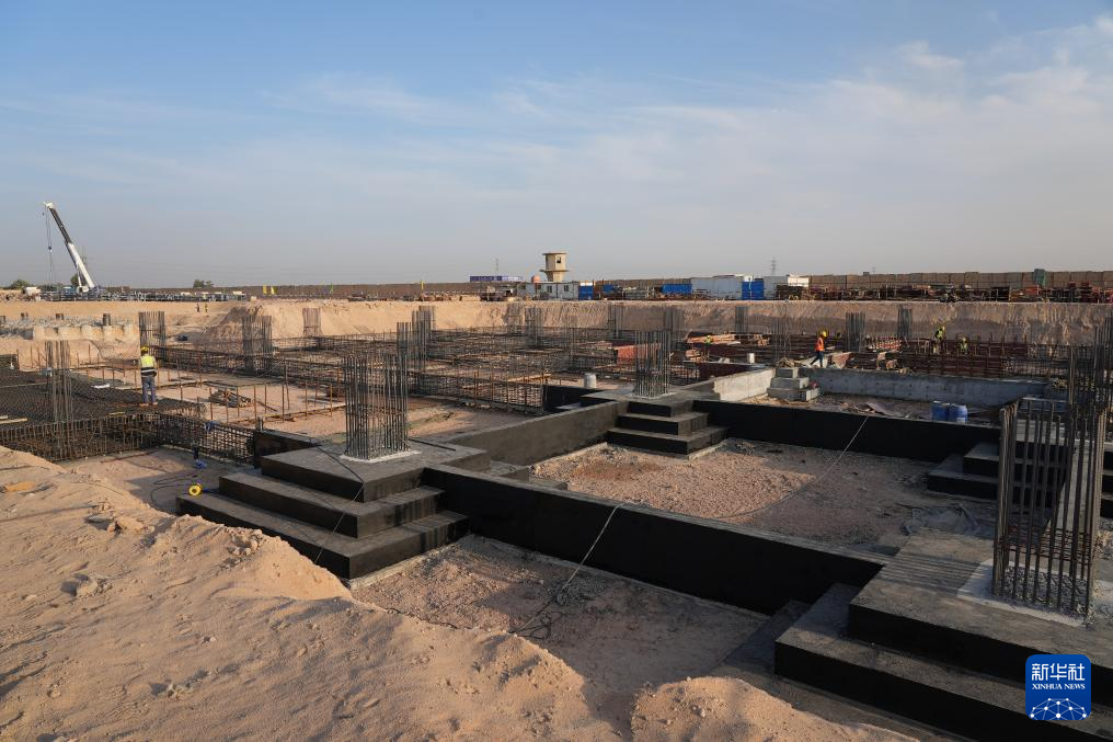 這是11月18日在伊拉克卡爾巴拉省拍攝的卡爾巴拉燃機電廠聯合循環擴建項目施工現場。新華社記者 段敏夫 攝