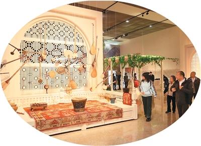 在一旁,質地柔軟、圖案獨特的和田地毯和具有柔嫩、防蟲、拉力強、不褪色、吸水力強等特點的桑皮紙毫不遜色,共同為觀眾呈現和田各族人民的古老智慧結晶。