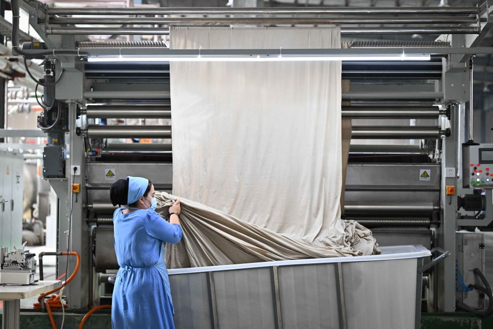 塔方員工在中塔合作項目丹加拉農業紡織產業園的印染車間工作。